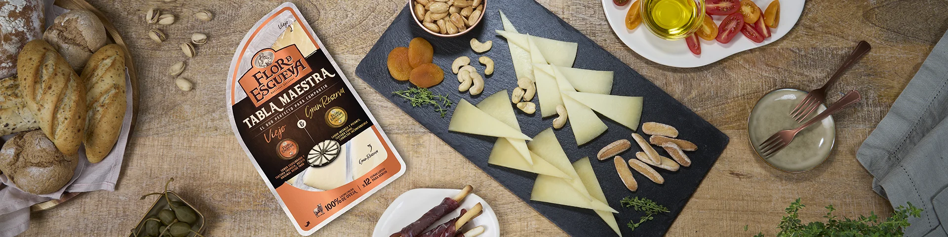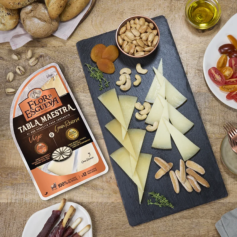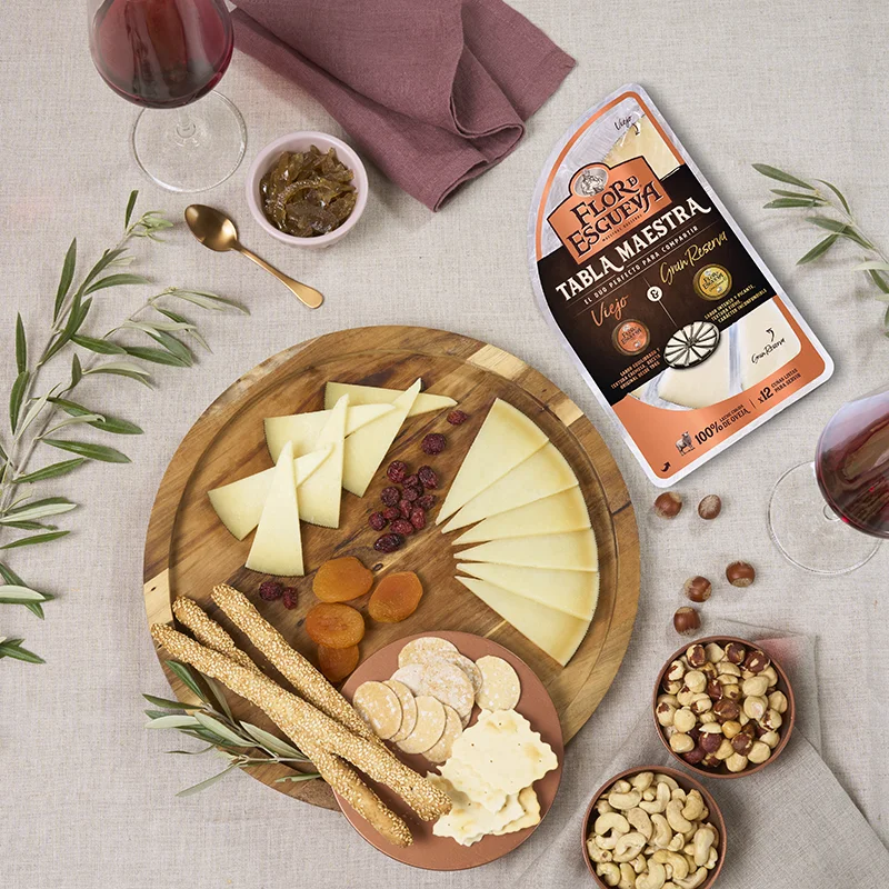 La Tabla Maestra de Flor de Esgueva es la forma más práctica de disfrutar del sabor de los quesos Viejo y Gran Reserva, ya cortados y listos para servir. Conservar entre 2 ºC y 6 ºC, y sacar del frigorífico 10-15 minutos antes de consumir para disfrutar al máximo su sabor y textura.